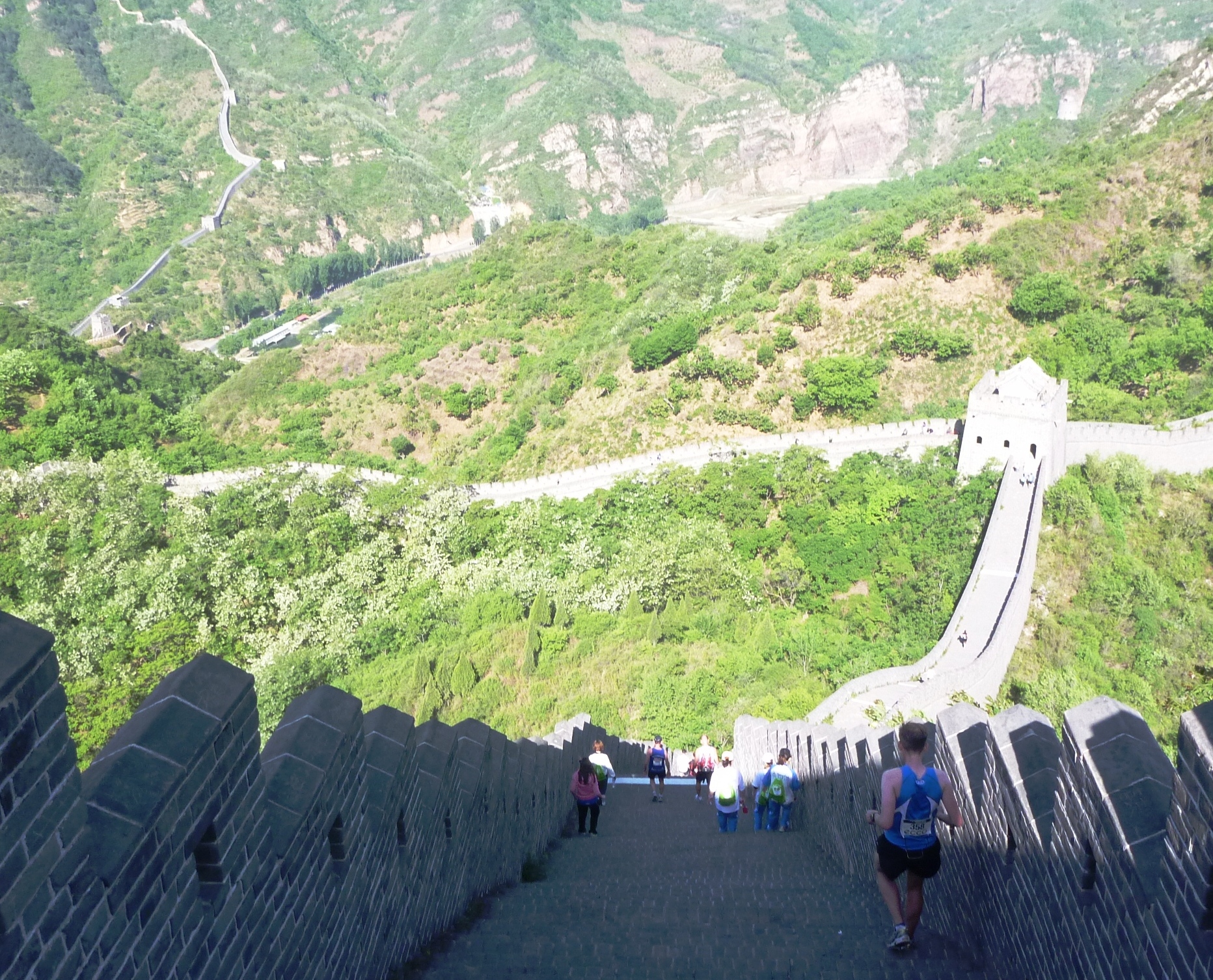 In no time I was charging along the famous wall. It was an incredible adrenaline rush to be running on something so impressive and so old. You run a contrast of perfectly renovated / maintained wall, and some areas that have not been touched in thousands of years. This section of the wall is famous for it’s 5164 steps ! Some of the steps are literally 2 feet high and you have to climb up them on hands and knees. Bizarrely it was fantastic !!
