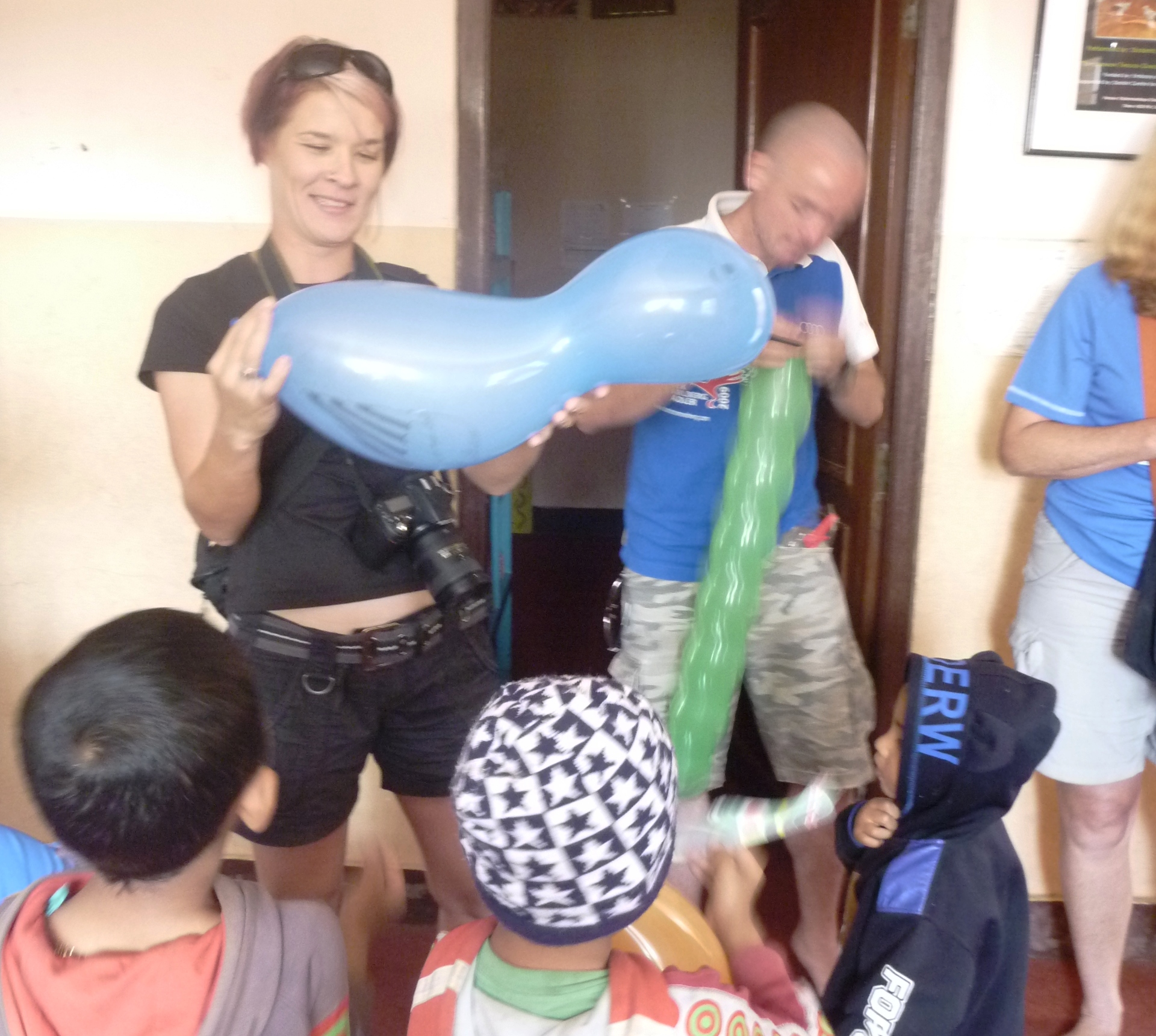 Exhausted by the dance offs, it was time to slow the pace down a little, so we dished out handfuls of sweets. The highlight of the gifts was the polystyrene aeroplanes and balloons that Mod and Elina had brought which went down fantastically. The energy levels rose again but this time the very little kids and the older kids stepped back and watched and chatted in a surprisingly mature fashion, giving an insight into the family dynamics of the orphanage.