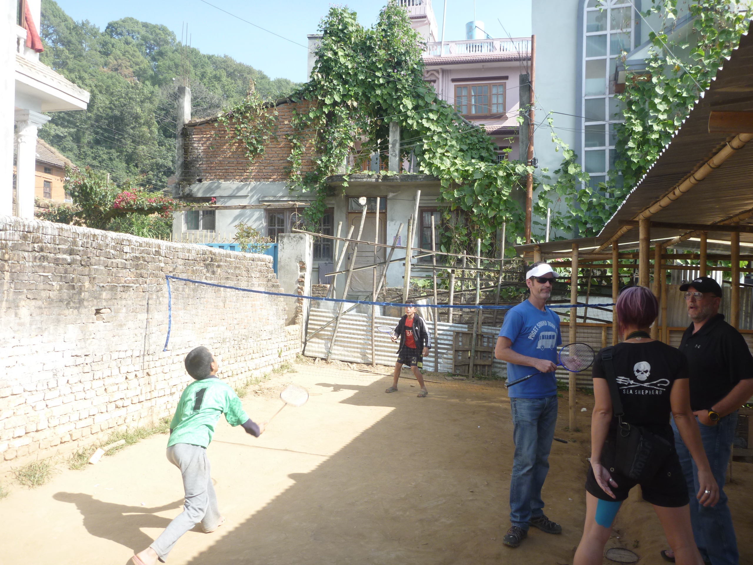 The modest grounds had space allocated for table tennis and badminton/soccer. The lads (adult lads, Nick, Mod and I) were ushered outside so that the boys could demonstrate their skills and wherever possible challenge the adults (who all pretty much lost). Meanwhile indoors the girls had dusted off the ghetto blasters and loaded the latest tunes (recorded from the radio) and the dance off started! Boy, could they dance! My fondest memory was a little cross-eyed tomboy doing a combination of robot and Bollywood dancing to Gangham style. The kids and we danced so much and so hard that dust (Kathmandu’s infamous dust) belched out from the seemingly clean carpets filling the room. It was incredible! The best disco I’ve been to for many a year!