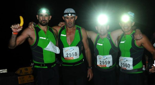 Having paced ourselves carefully we were soon catching and then overtaking many of the solitary runners, which was very satisfying and added to the already high adrenaline levels and positive energy. All of a sudden out of the darkness we spotted our target team ( well their bright pink socks anyway ). We dropped into stealth mode and the language cunningly switched to Afrikaans ( which was a bit of an issue for myself as the only non Saffer ).